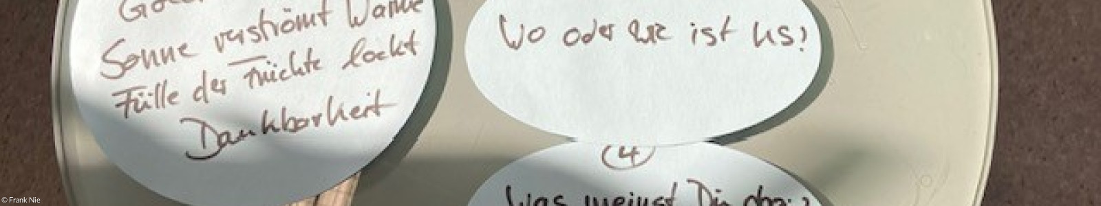 Die ehrenamtlichen Klinikseelsorgerinnen (da fehlt kein Gender-Sternchen, in der Gruppe ist kein Mann!) schrieben solche Elfchen. Und zwar zum Thema Klinikseelsorge. Gar nicht so leicht, in elf Worten zu sagen, was jemanden an der Seelsorge in einem Krankenhaus so begeistert und erfüllt, dass er bzw. sie ehrenamtlich regelmäßig Seelsorge für Patient*innen anbietet!